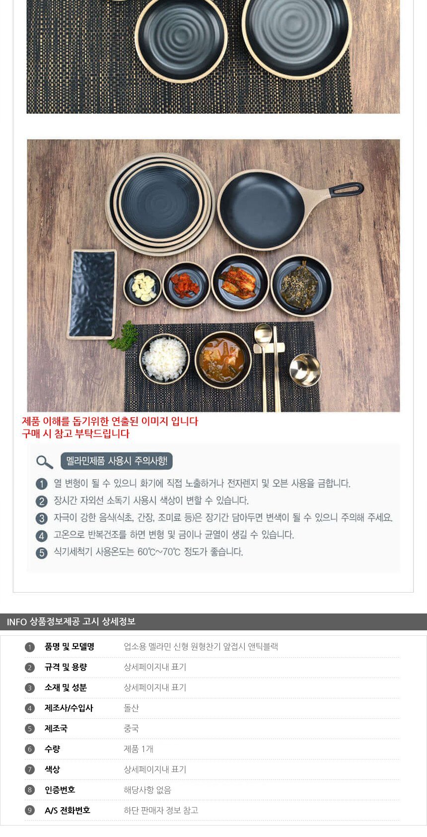 업소용 멜라민 신형 원형찬기 앞접시 앤틱블랙 2호 이미지/