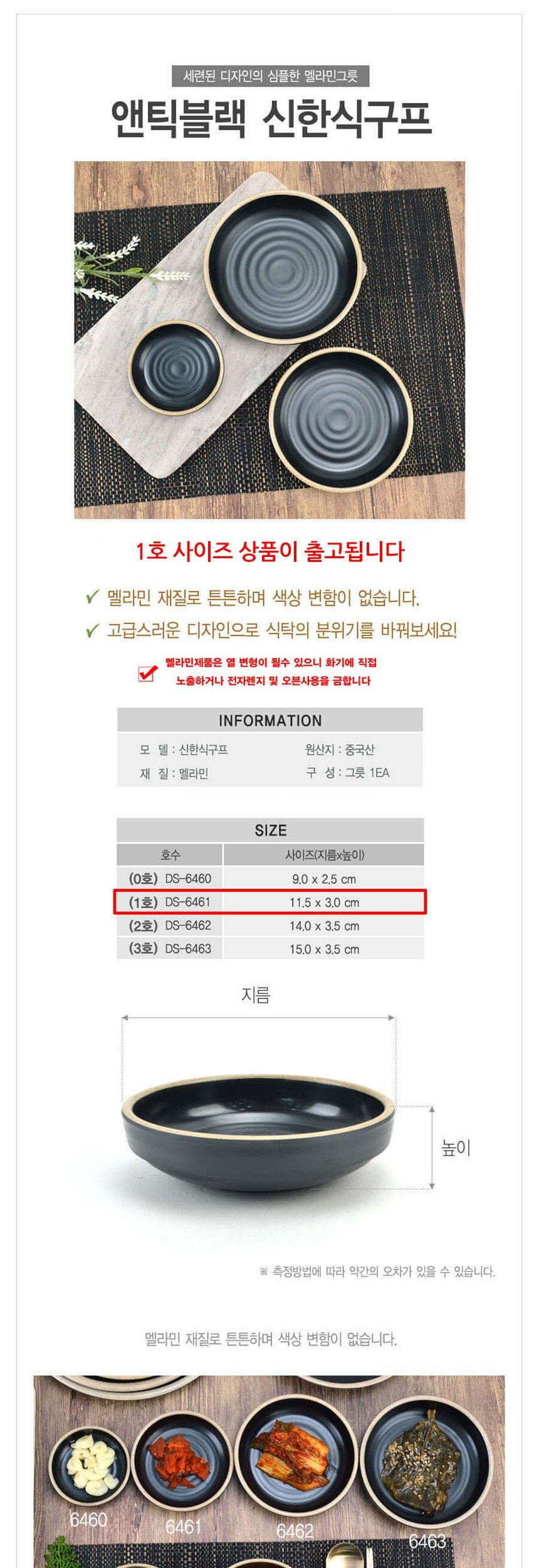 업소용 멜라민 신형 원형찬기 앞접시 앤틱블랙 1호 이미지/