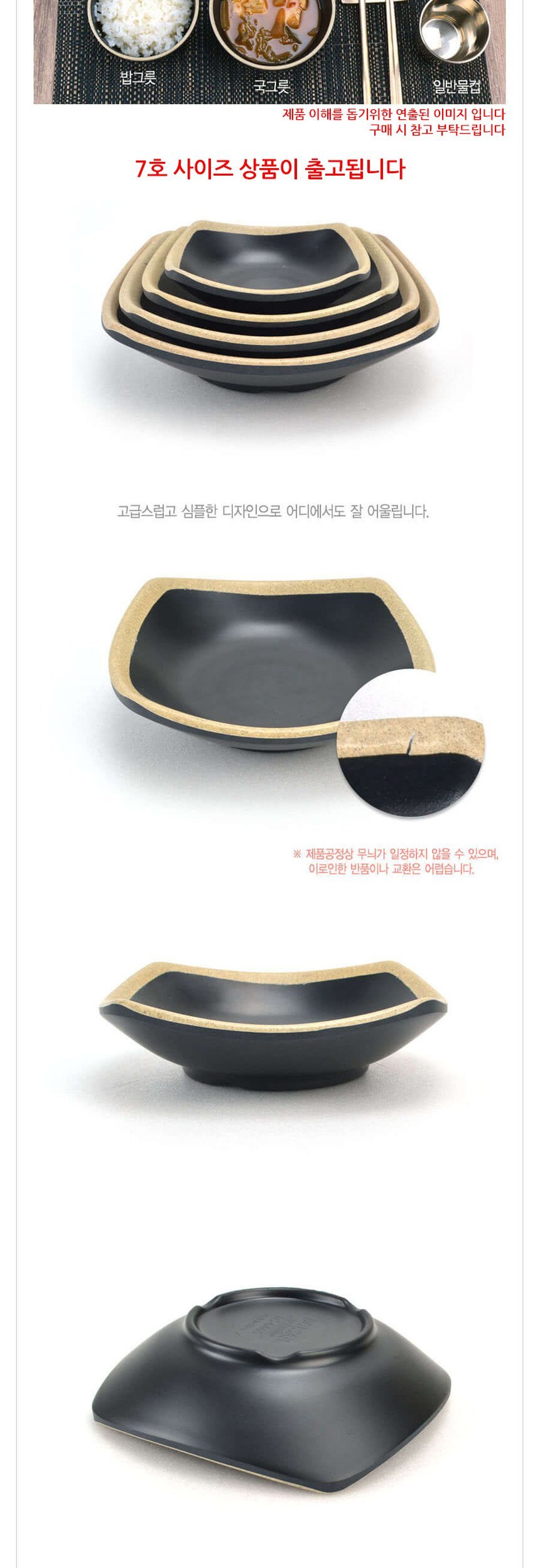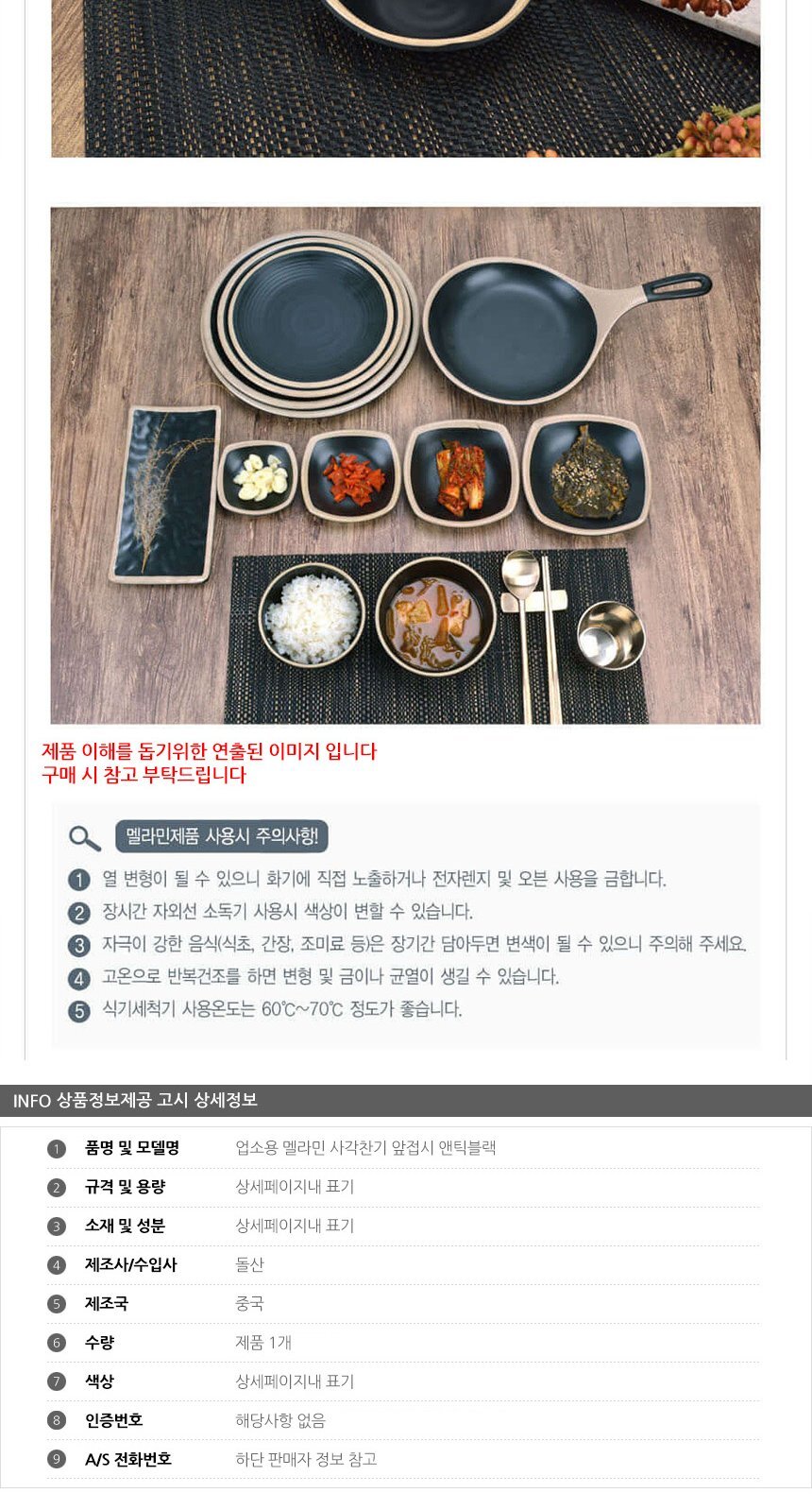 업소용 멜라민 사각찬기 앞접시 앤틱블랙 7호 이미지/