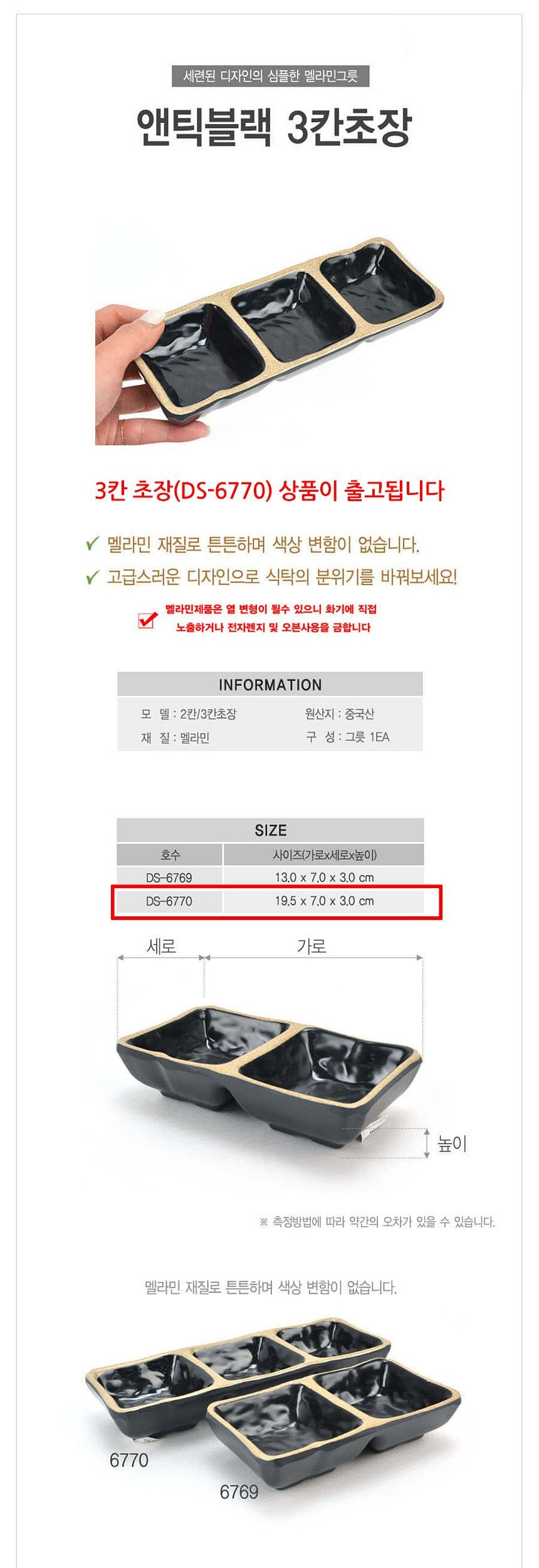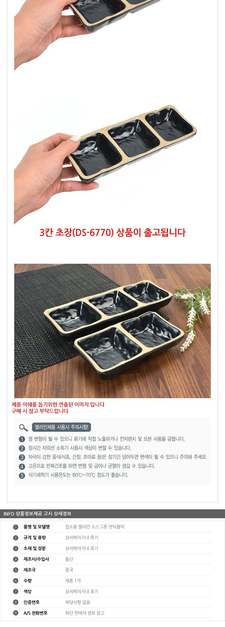 업소용 멜라민 3칸 소스그릇 앤틱블랙
