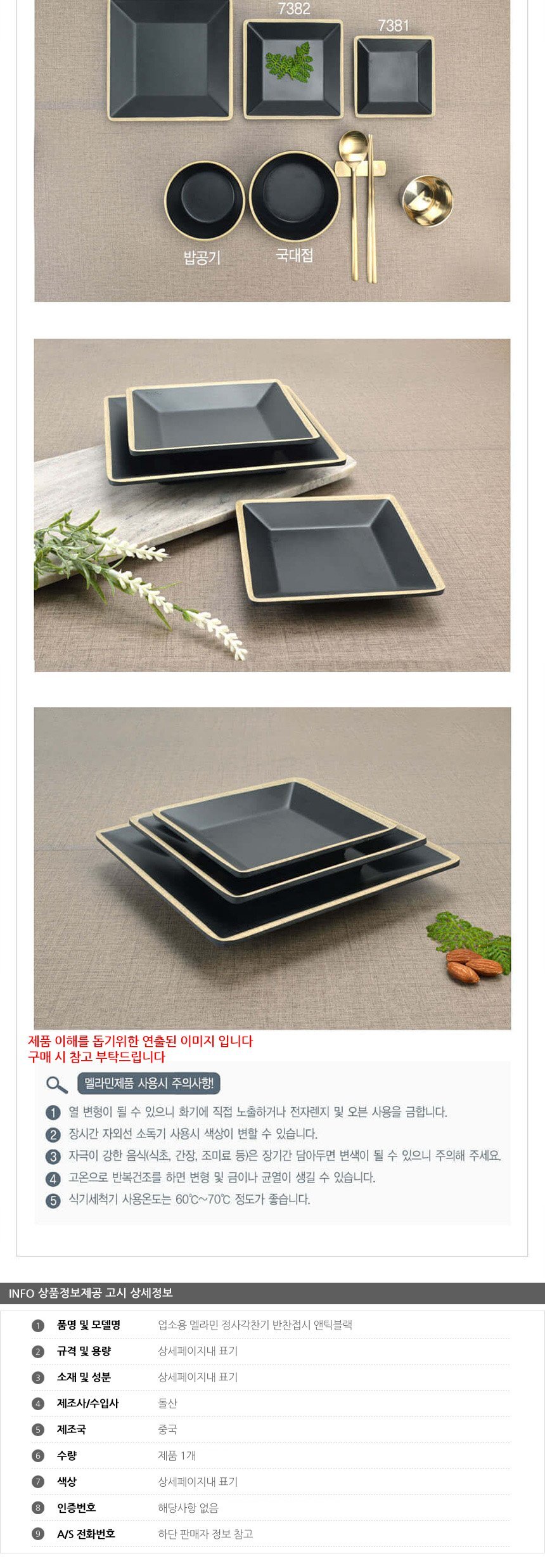 업소용 멜라민 정사각찬기 반찬접시 앤틱블랙 2호 이미지/