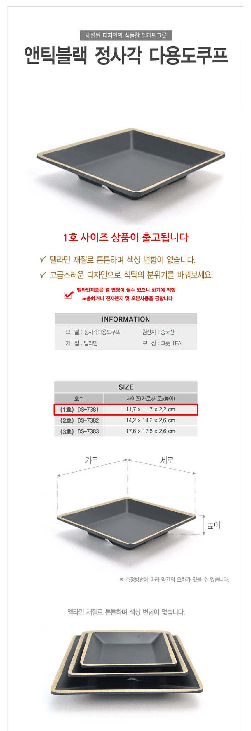 업소용 멜라민 정사각찬기 반찬접시 앤틱블랙 1호