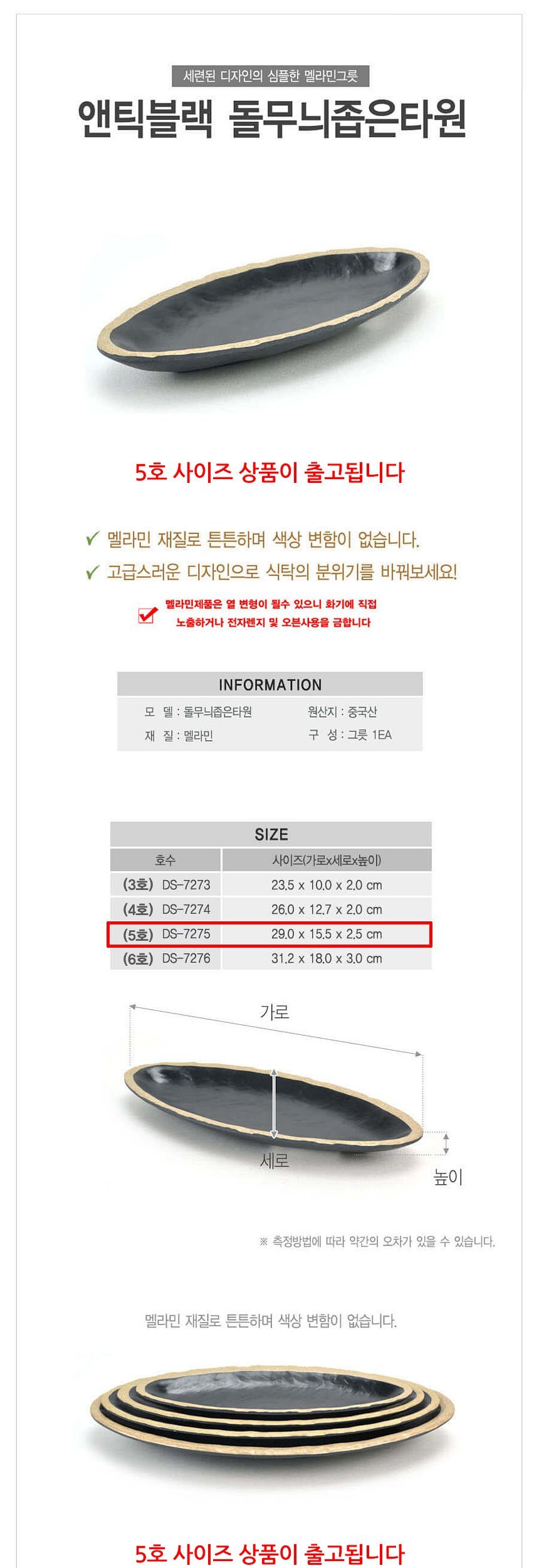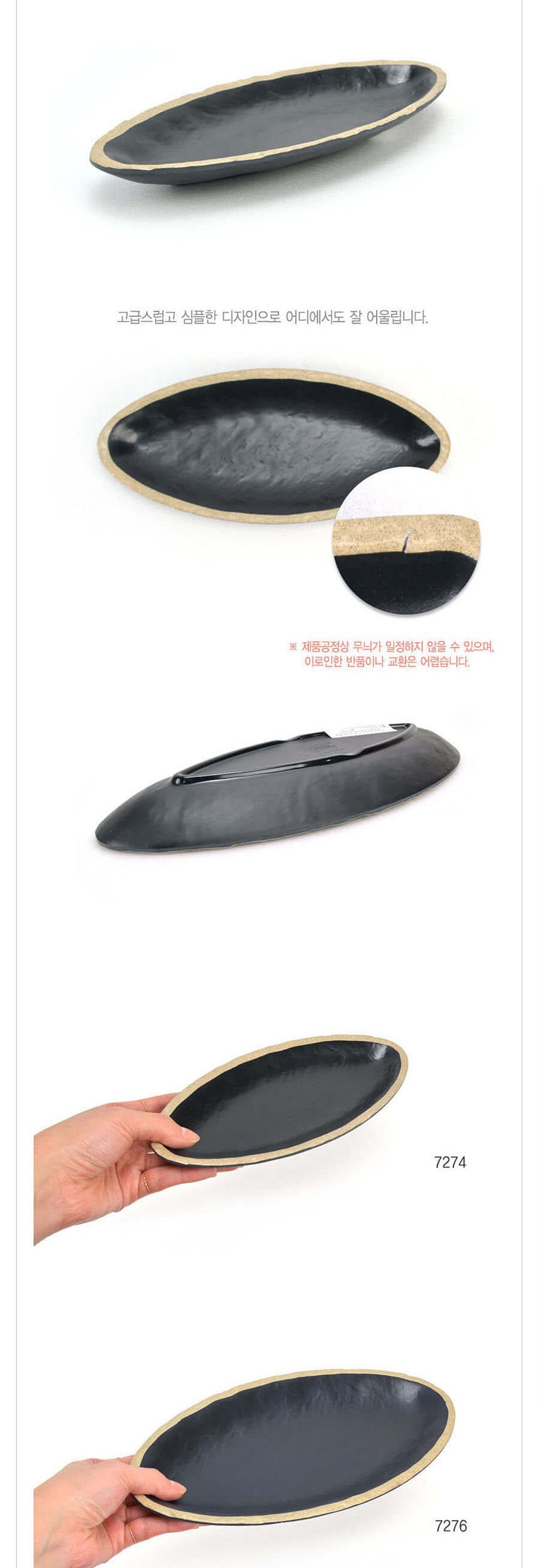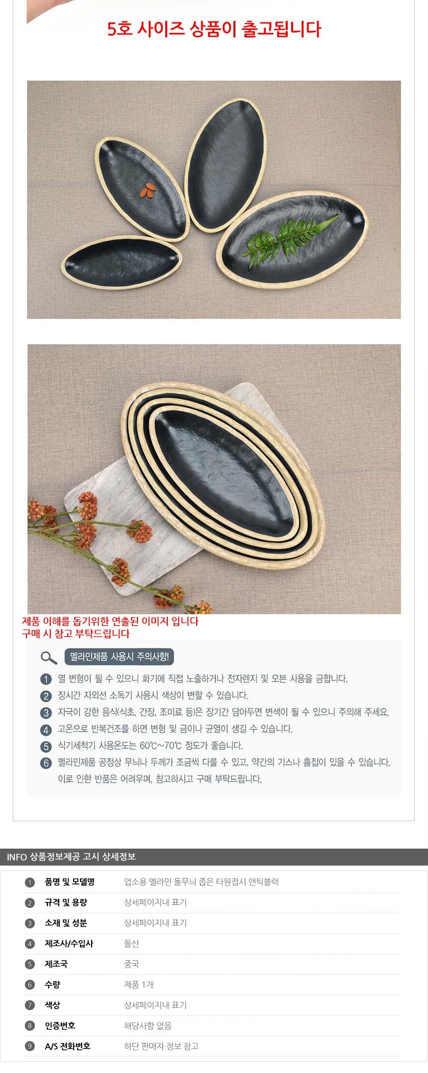 업소용 멜라민 돌무늬 좁은 타원접시 앤틱블랙 5호 이미지/