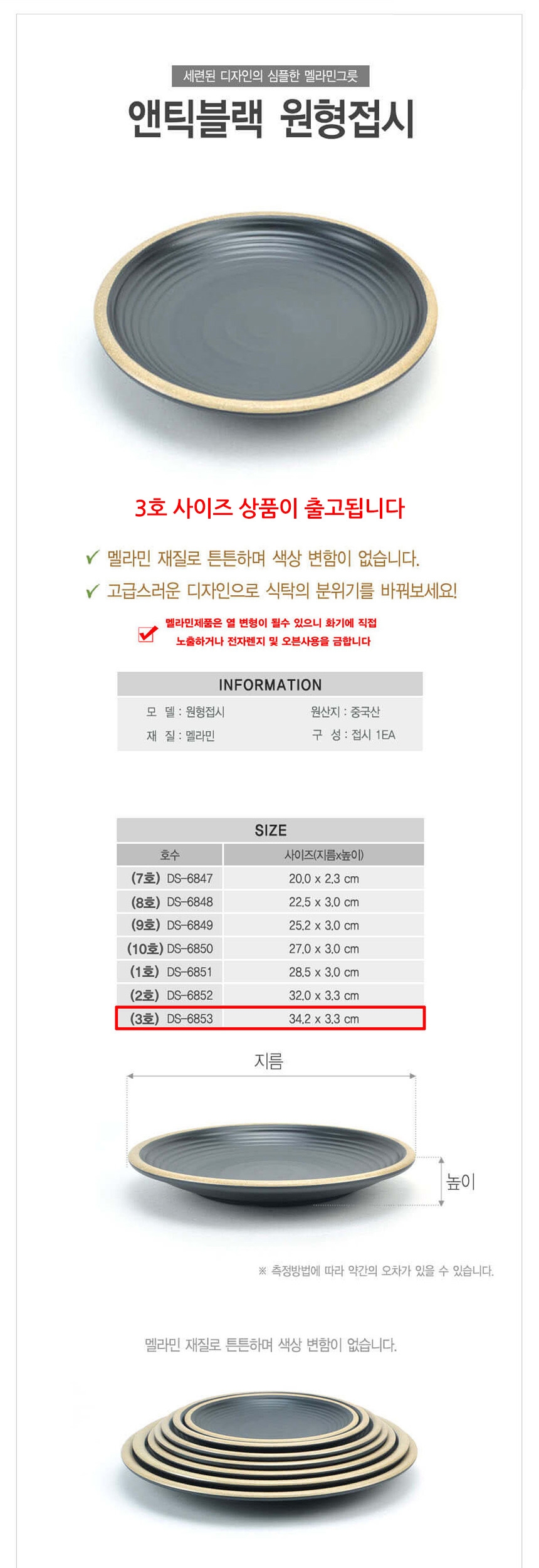 업소용 멜라민 원형접시 앤틱블랙 3호 34cm 이미지/