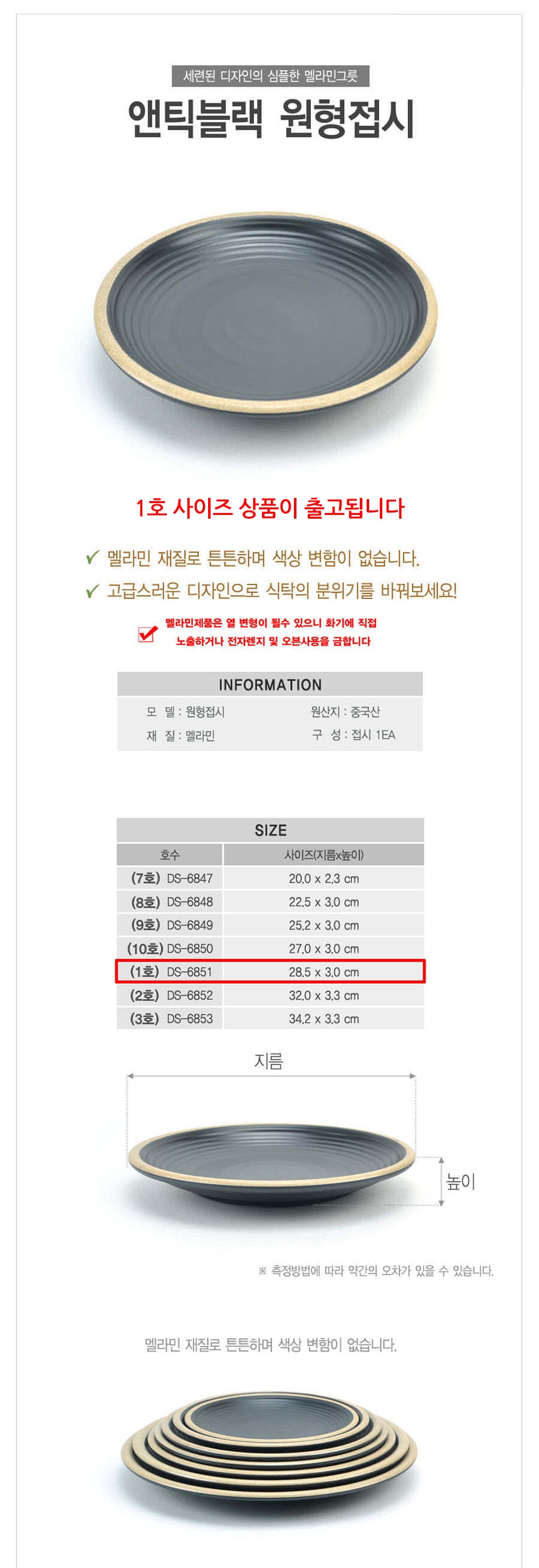 업소용 멜라민 원형접시 앤틱블랙 1호 28cm 이미지/
