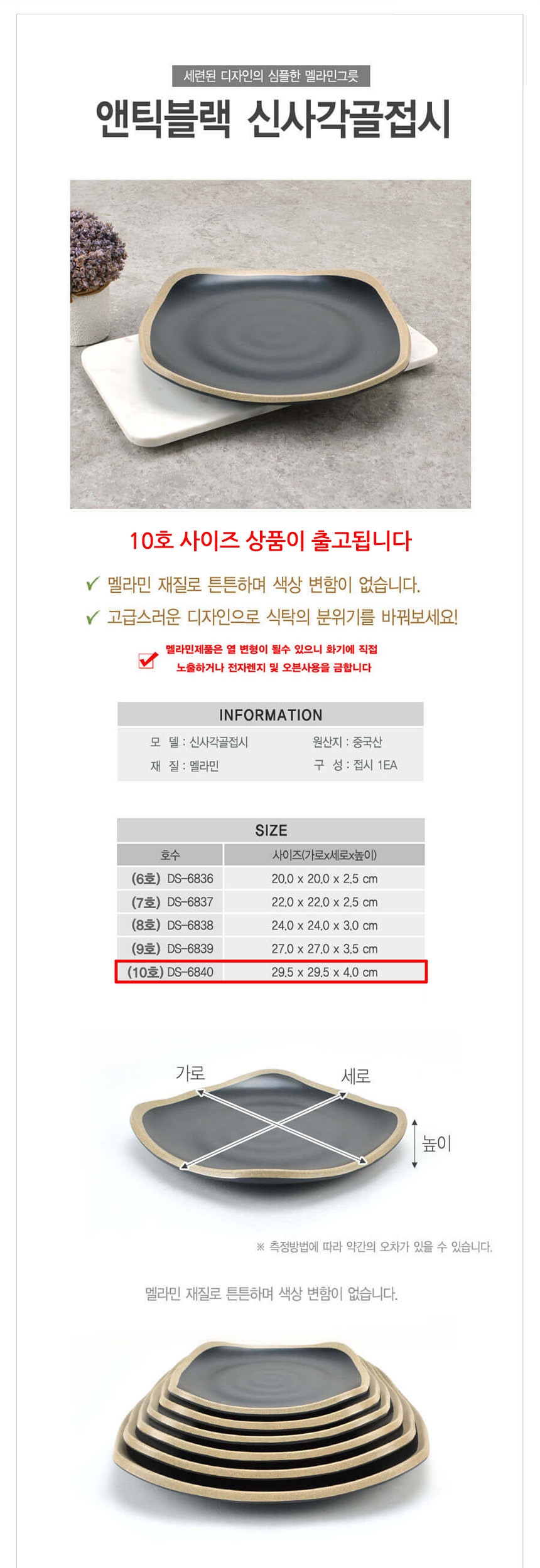 업소용 멜라민 신형 사각 골접시 앤틱블랙 10호