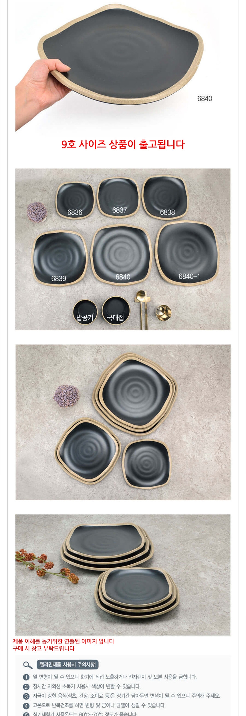 업소용 멜라민 신형 사각 골접시 앤틱블랙 9호
