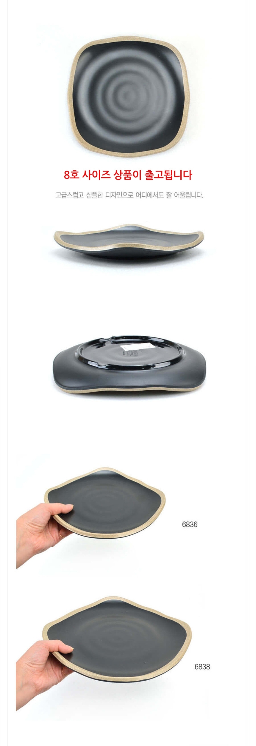 업소용 멜라민 신형 사각 골접시 앤틱블랙 8호 이미지/