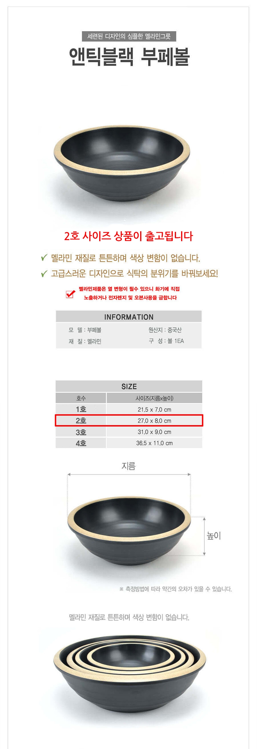 업소용 멜라민 뷔페볼 샐러드볼 앤틱블랙 2호 27cm 이미지/
