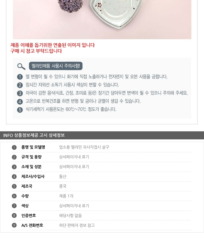 업소용 멜라민 귀사각접시 살구 4호 이미지/