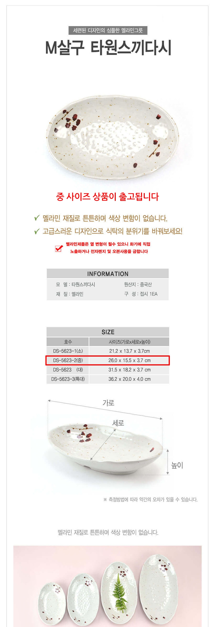 업소용 멜라민 타원 밑반찬접시 타원찬기 살구 중형