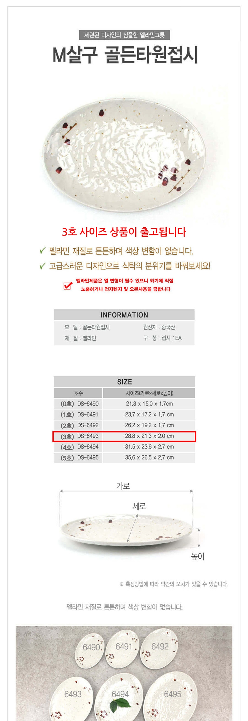 업소용 멜라민 골든 타원접시 살구 3호 이미지/