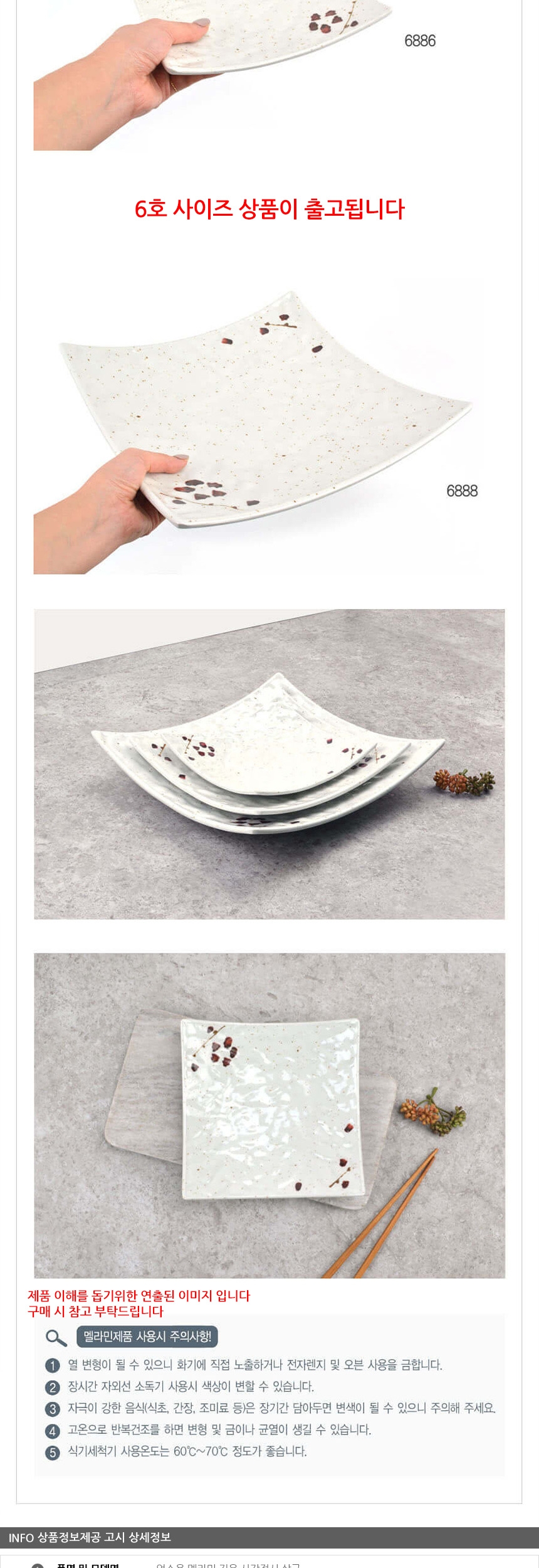 업소용 멜라민 깊은 사각접시 살구 6호 이미지/