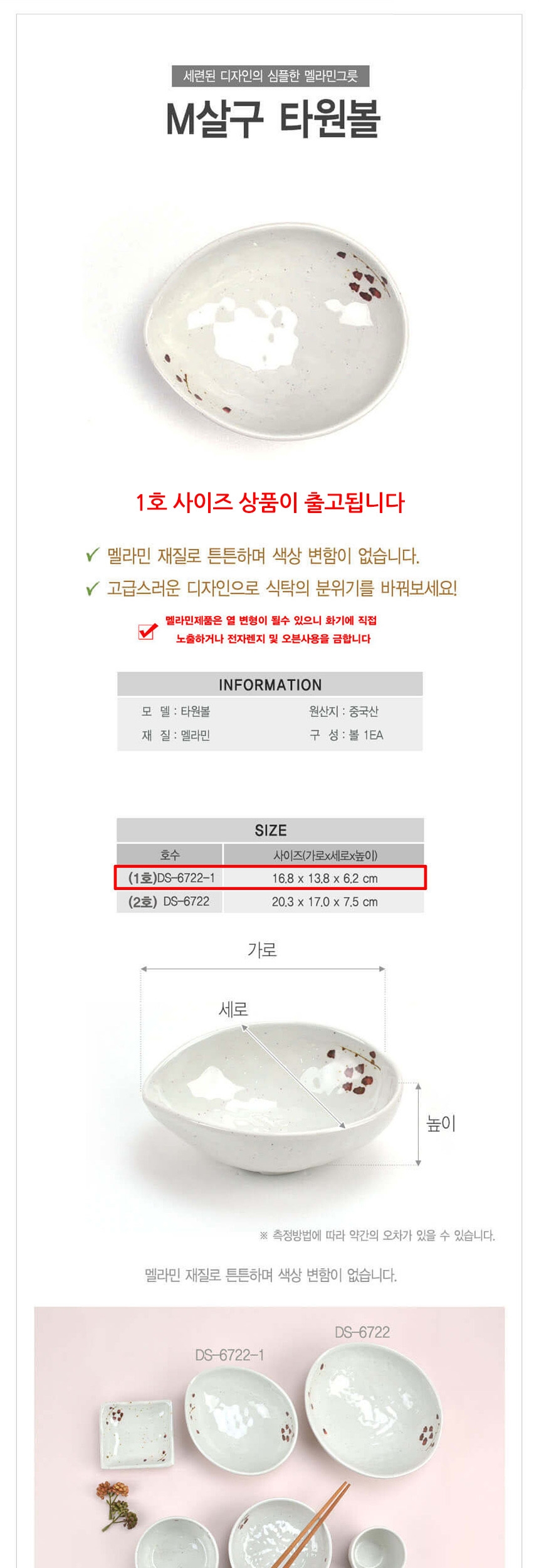 업소용 멜라민 타원볼 타원찬기 살구 1호