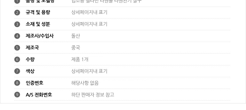5. A/S 책임자와 전화번호 또는 소비자상담 관련 전화번호 : 상품상세설명참조