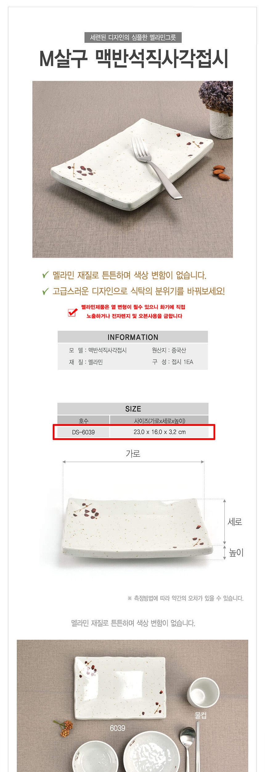 일본식기 센당토쿠사 컬렉션 사각접시( 19cm )
