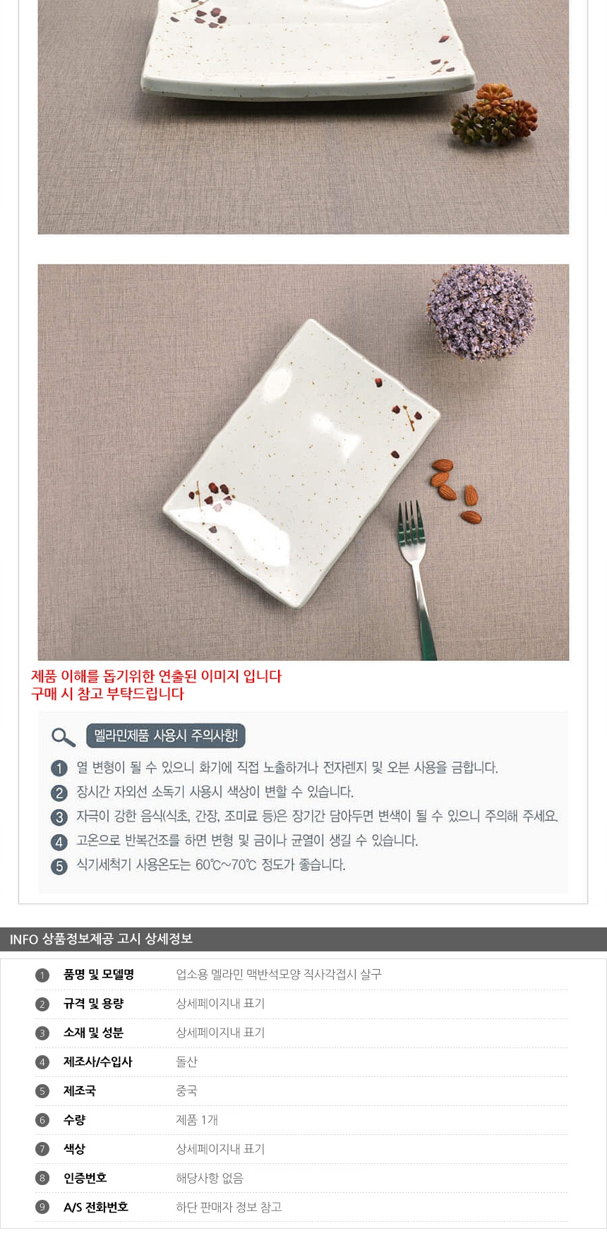 업소용 멜라민 맥반석모양 직사각접시 살구 이미지/