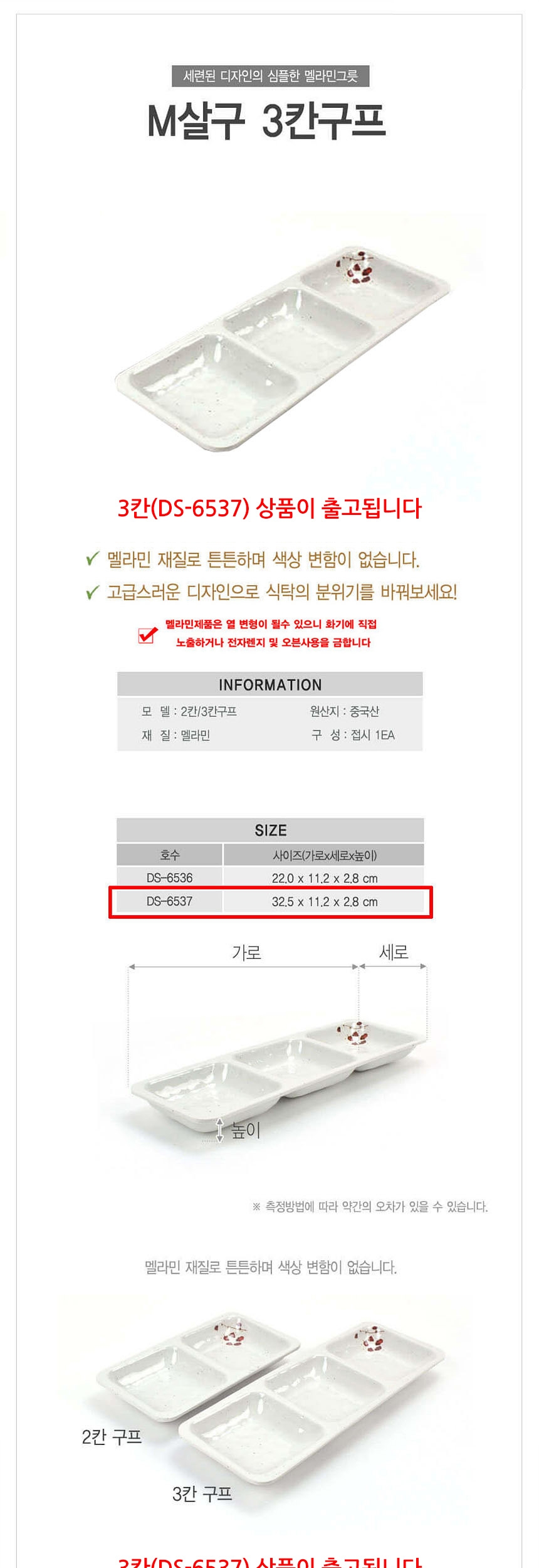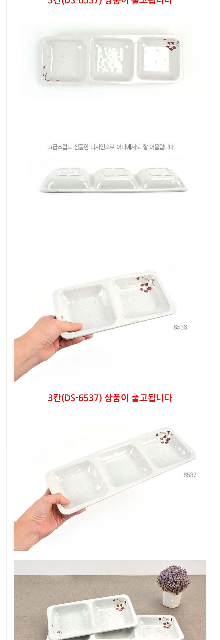 업소용 멜라민 3칸 반찬접시 살구 이미지/