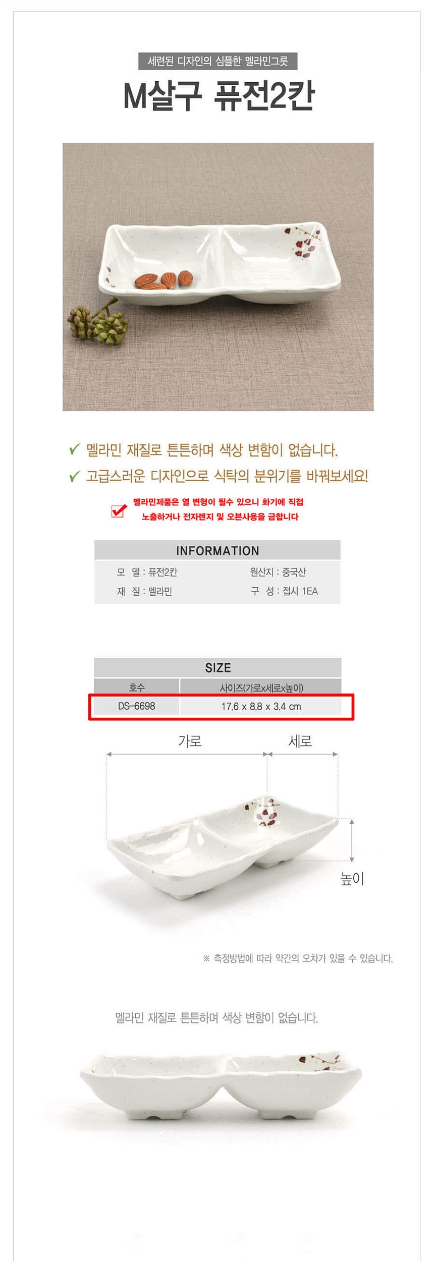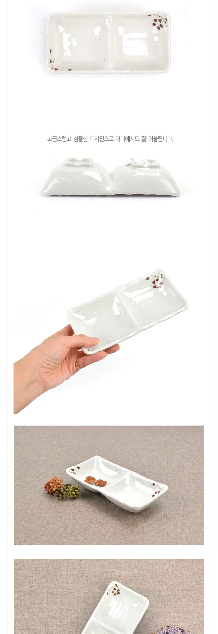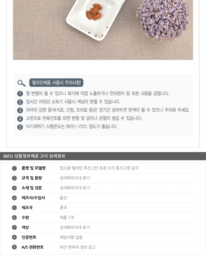 업소용 멜라민 퓨전 2칸 초장 사각 종지그릇 살구