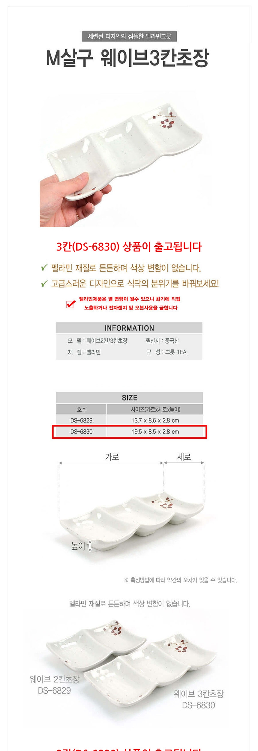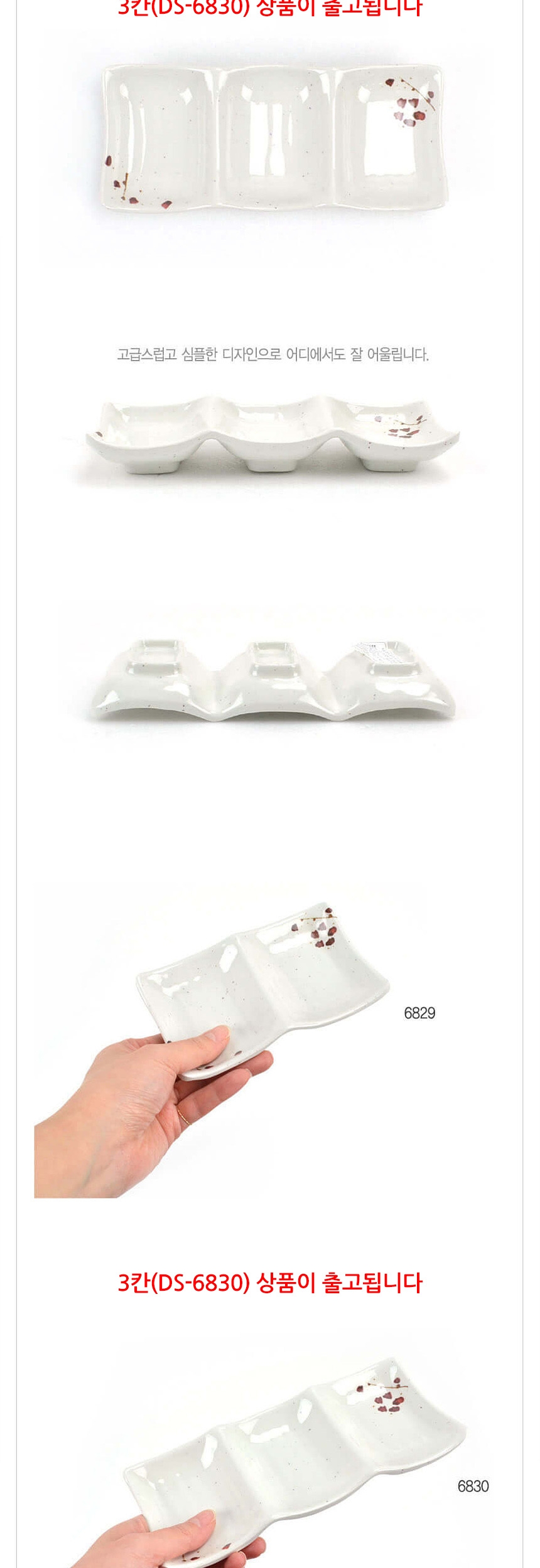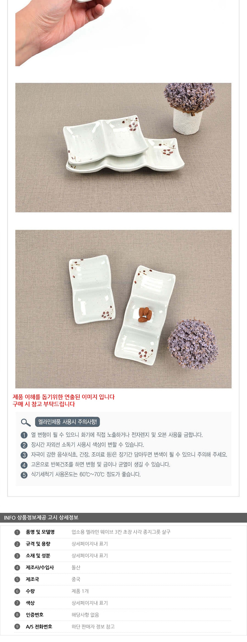 업소용 멜라민 웨이브 3칸 초장 사각 종지그릇 살구