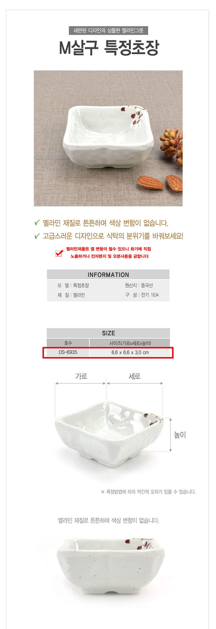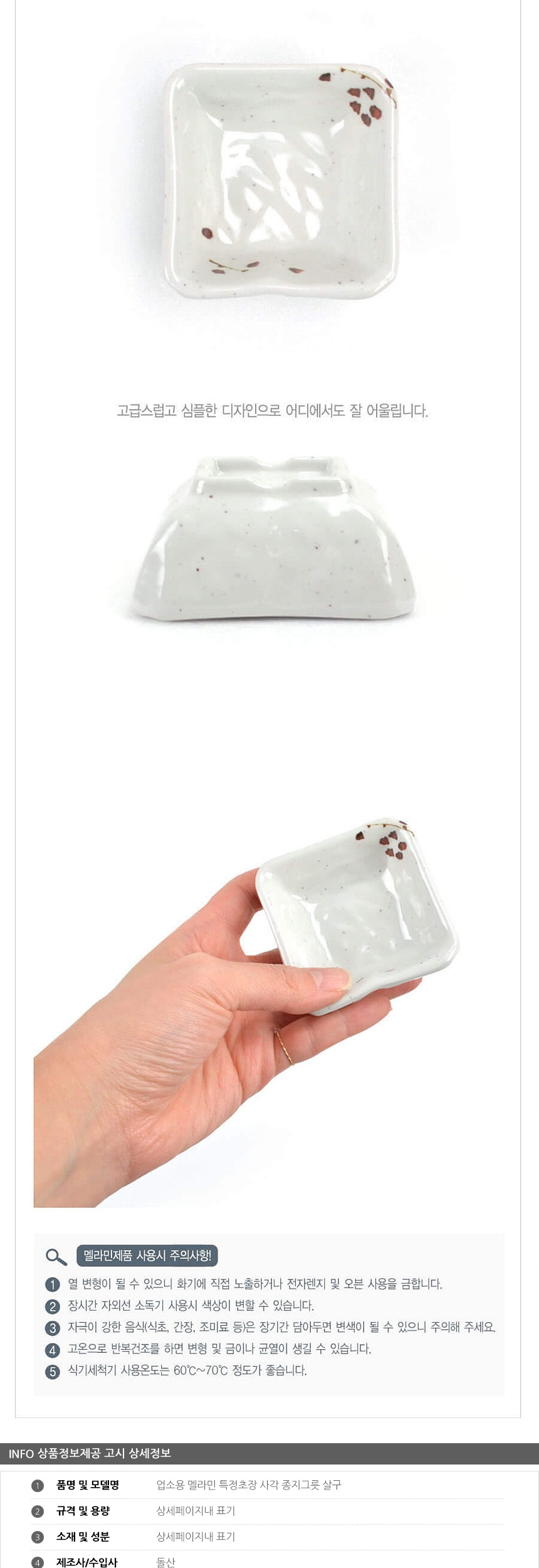 업소용 멜라민 특정초장 사각 종지그릇 살구