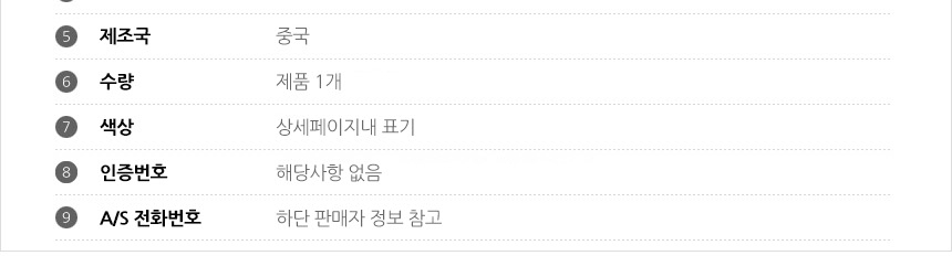 5. A/S 책임자와 전화번호 또는 소비자상담 관련 전화번호 : 상품상세설명참조
