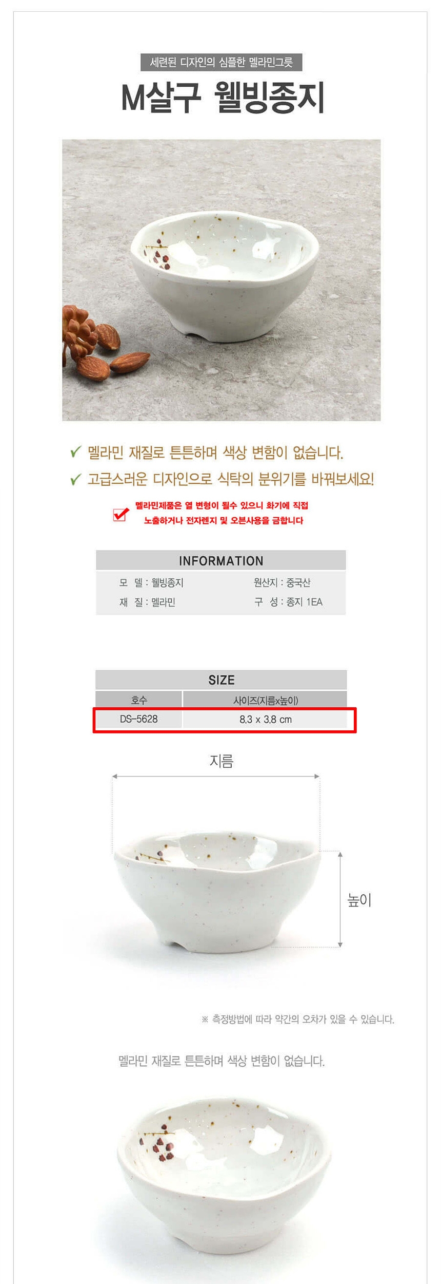업소용 멜라민 웰빙 원형 종지그릇 살구 8cm
