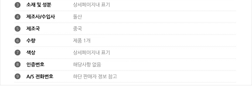 제조국/원산지 상품상세설명에 표기
