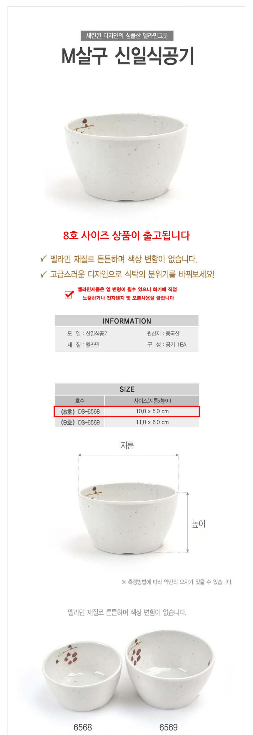 업소용 멜라민 신형 일식 공기 밥그릇 살구 8호