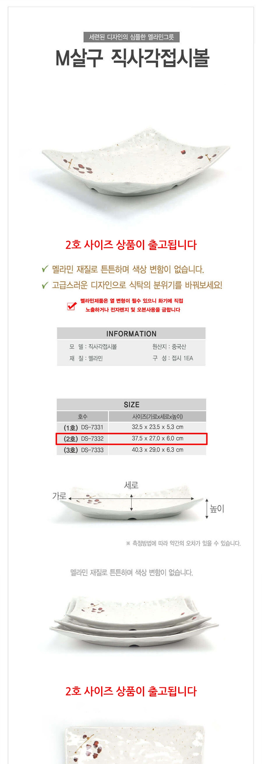 업소용 멜라민 직사각접시볼 사각접시 살구 2호 이미지/
