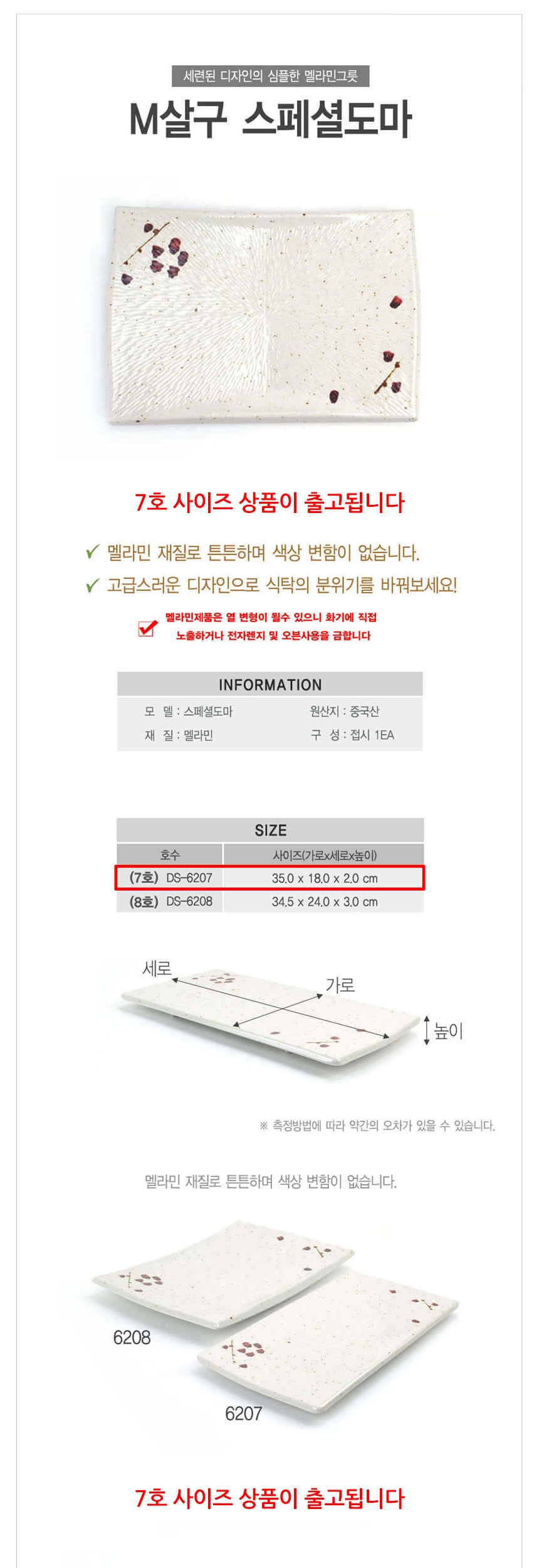 업소용 멜라민 스페셜 도마모양 직사각접시 살구 7호 이미지/