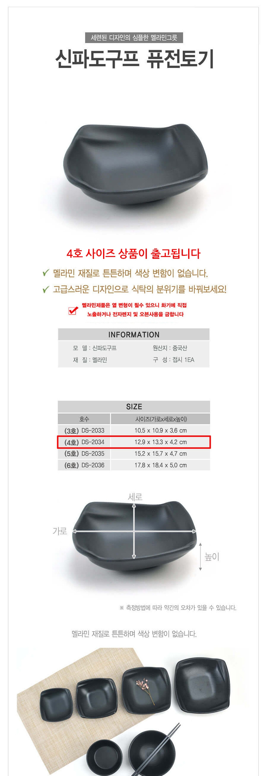 멜라민 퓨전토기 신형 파도구프 사각찬기 4호 이미지/