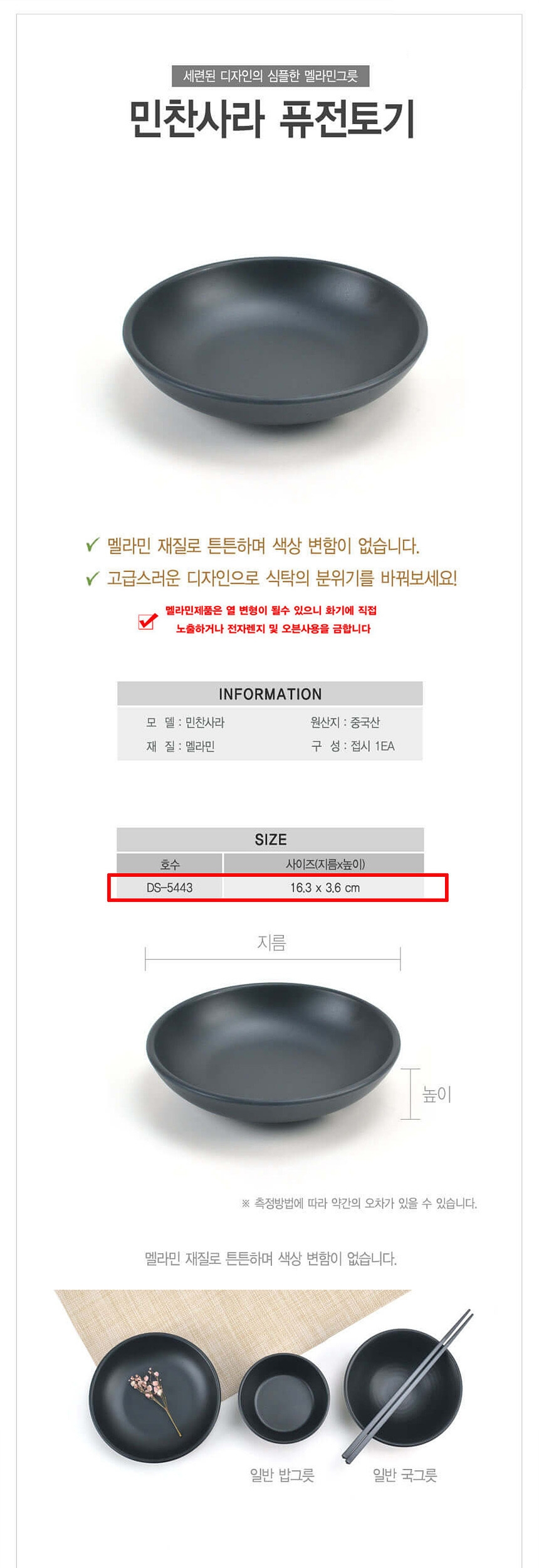멜라민 퓨전토기 민무늬 원형찬기 앞접시 16cm