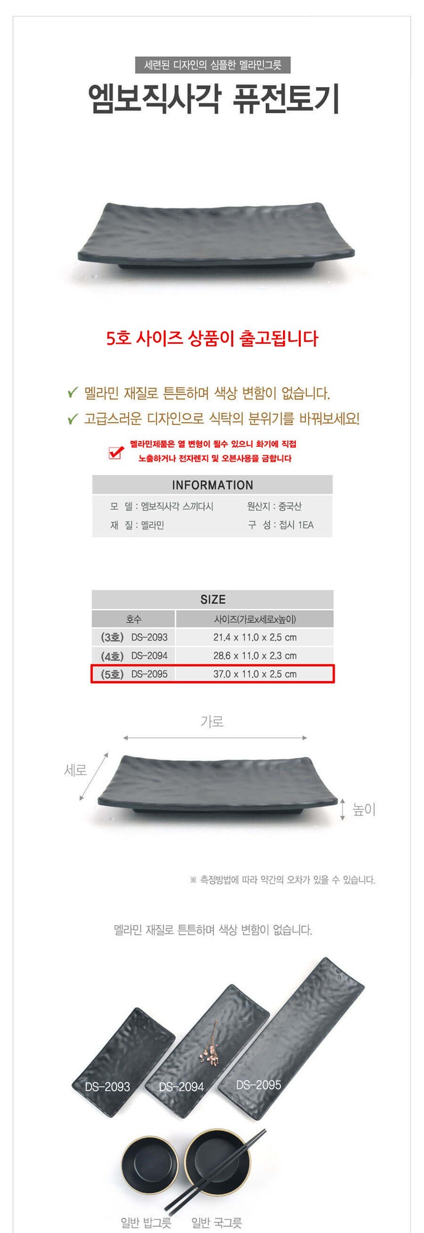 멜라민 퓨전토기 엠보싱 직사각접시 5호