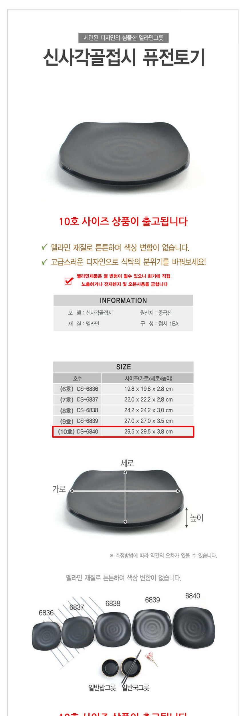 멜라민 퓨전토기 신형 사각 골접시 10호
