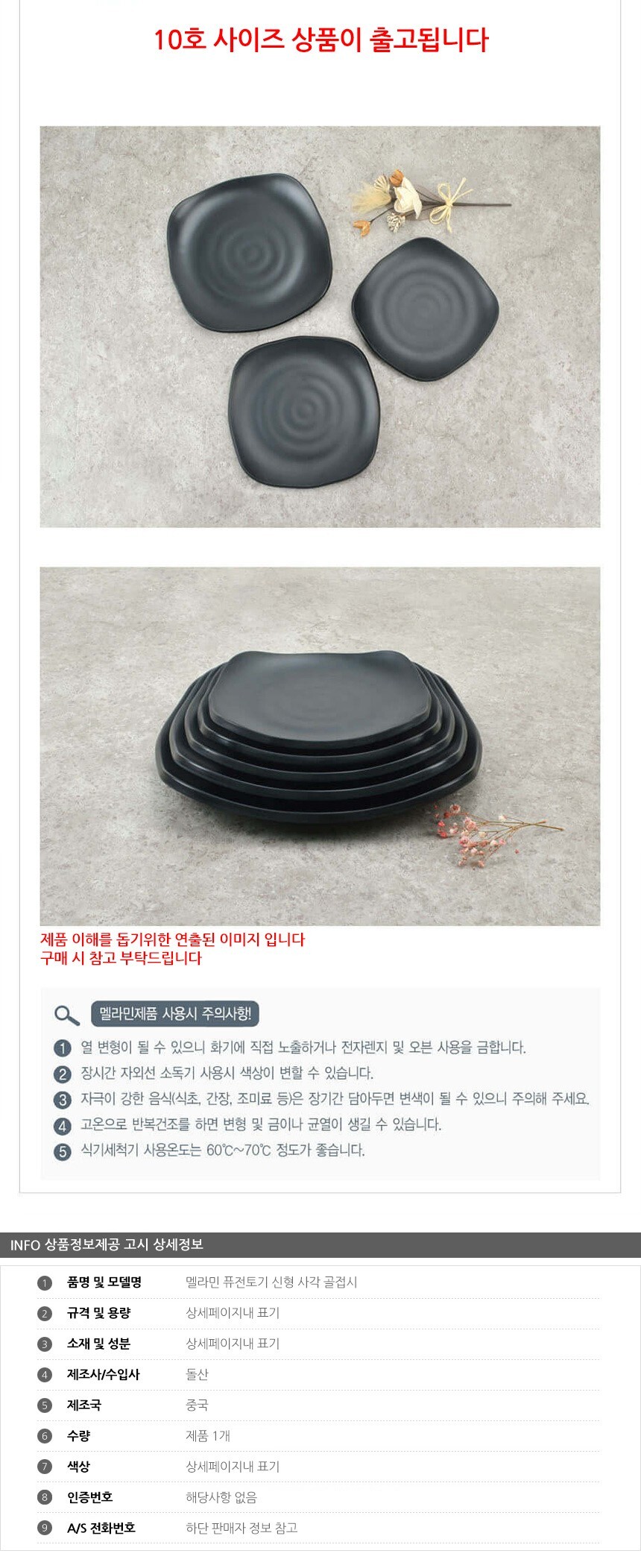 멜라민 퓨전토기 신형 사각 골접시 10호 이미지/