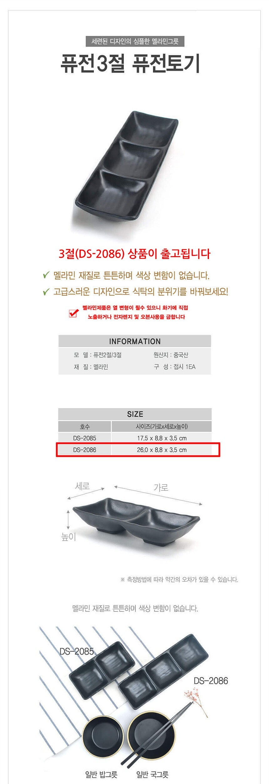 멜라민 퓨전토기 퓨전 3절 사각 초장 종지그릇