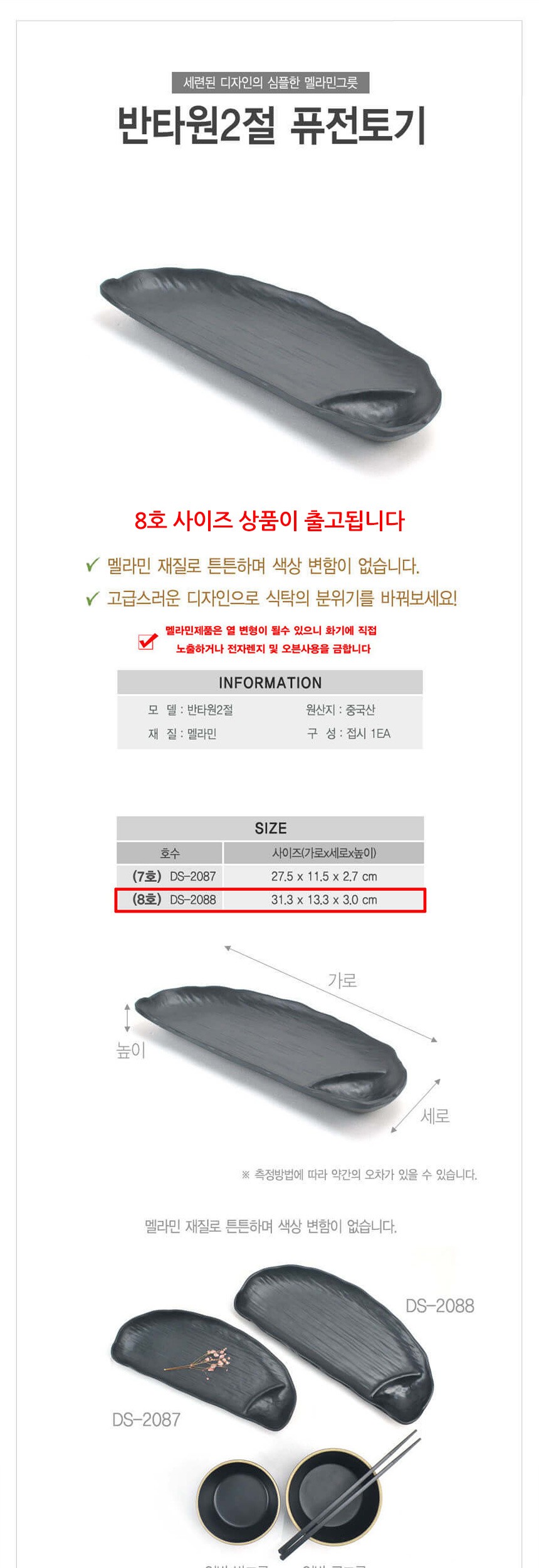 멜라민 퓨전토기 2절 반타원접시 타원찬기 8호 이미지/
