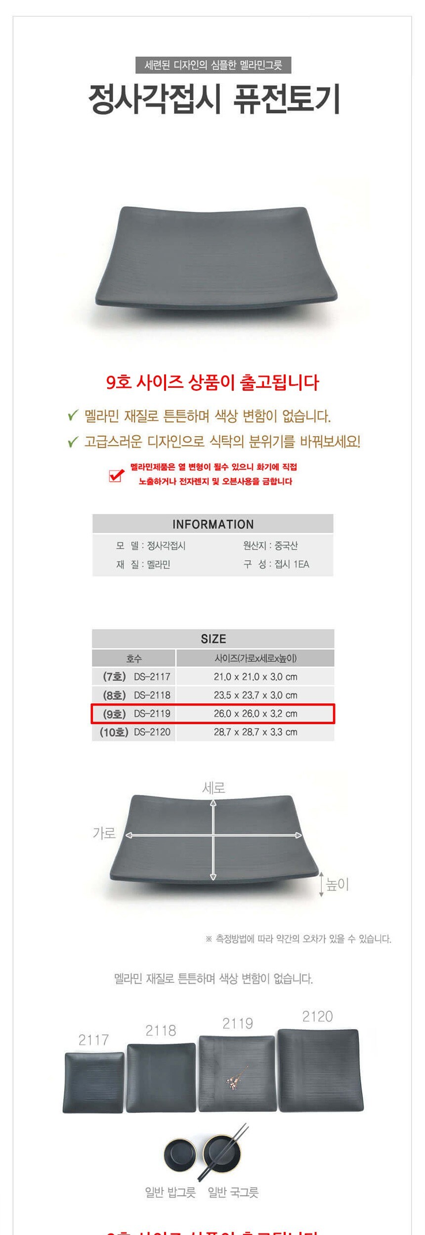 멜라민 퓨전토기 정사각접시 9호 이미지/