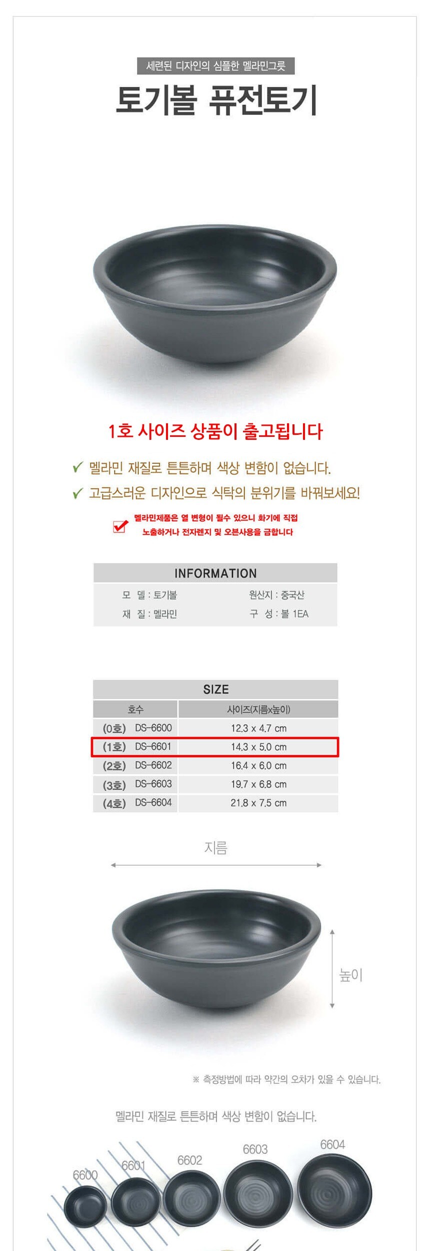 멜라민 퓨전토기 토기볼 비빔그릇 대접 1호 14cm 이미지/