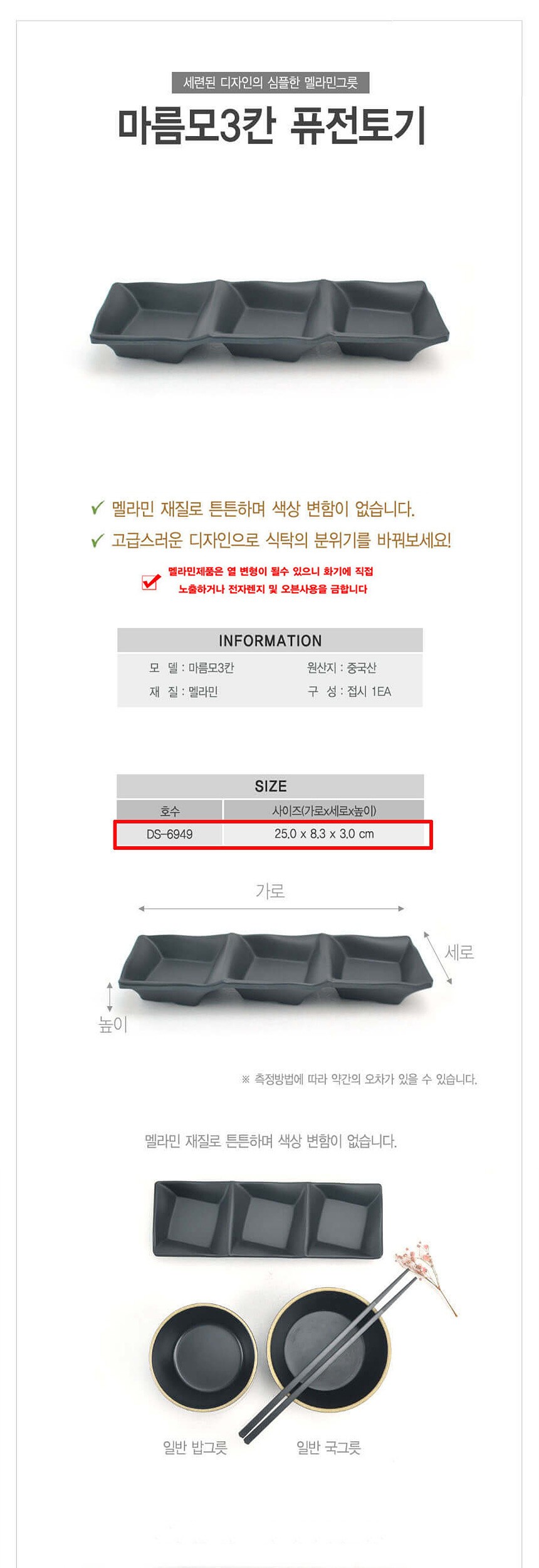 멜라민 퓨전토기 마름모 3칸 사각 초장 종지그릇