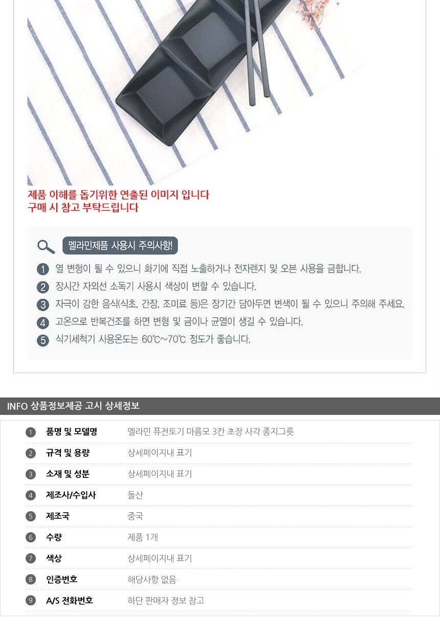 멜라민 퓨전토기 마름모 3칸 사각 초장 종지그릇 이미지/