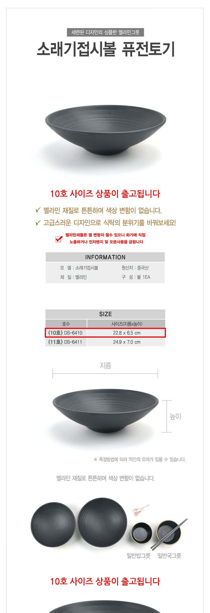 멜라민 퓨전토기 소래기 접시볼 면기 대접 10호 23cm