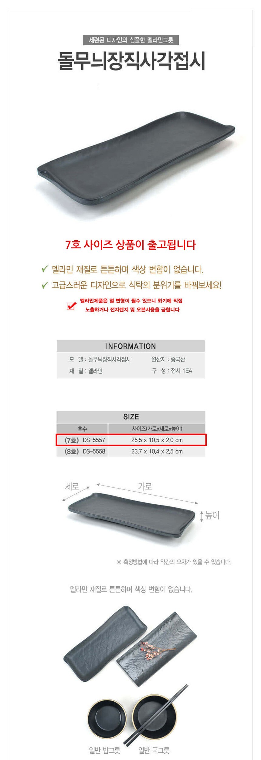 멜라민 퓨전토기 돌무늬 긴 직사각접시 7호 이미지/