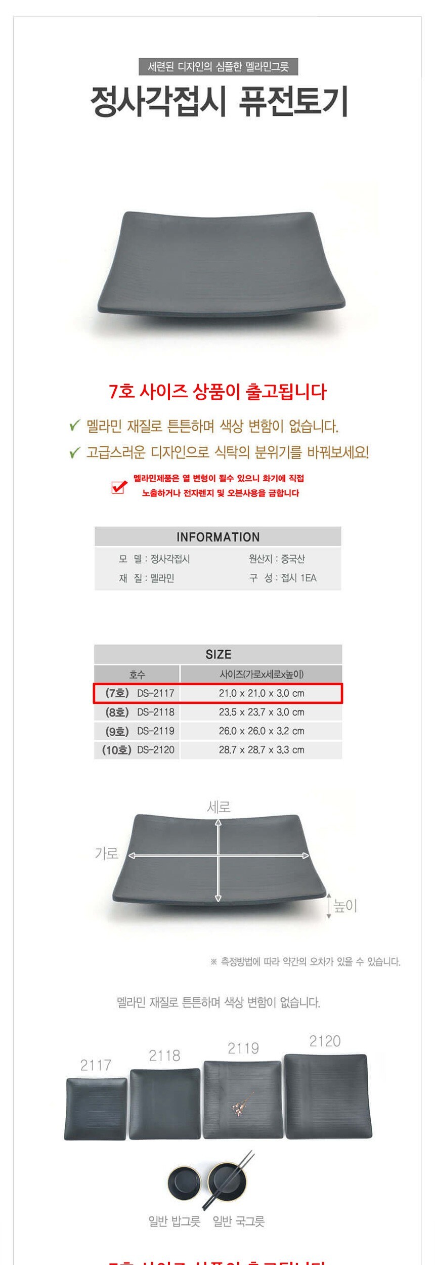멜라민 퓨전토기 정사각접시 7호 이미지/