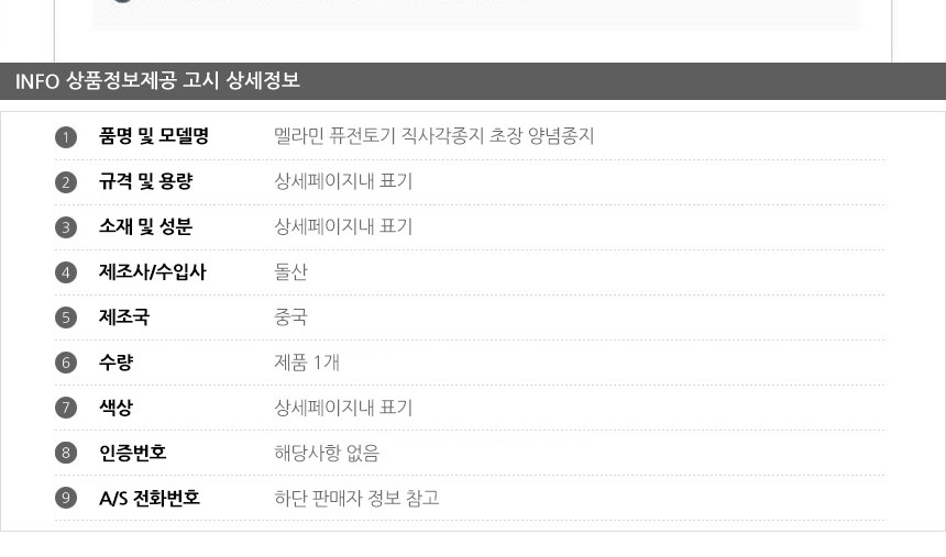 제조자 상품상세설명에 표기