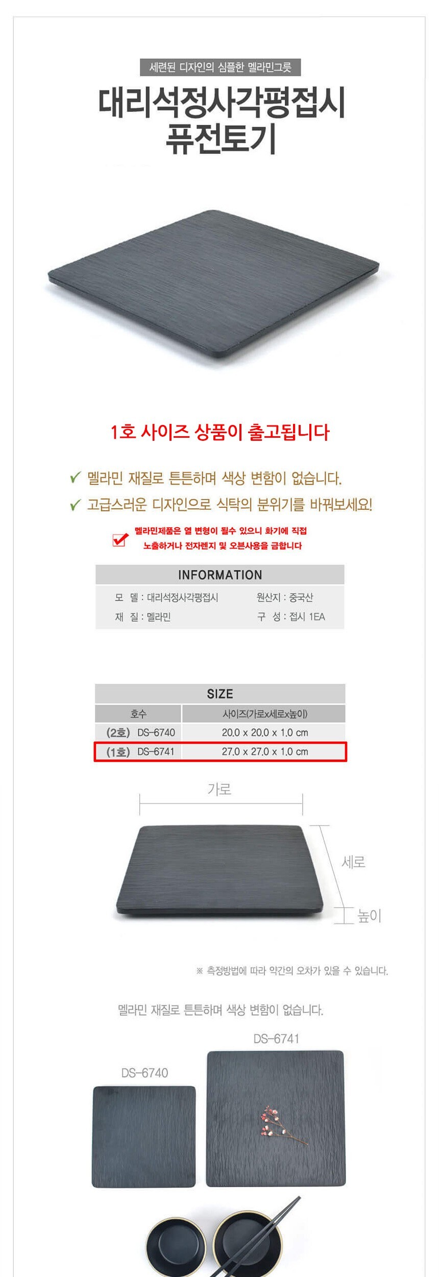 멜라민 퓨전토기 대리석무늬 정사각접시 평접시 1호