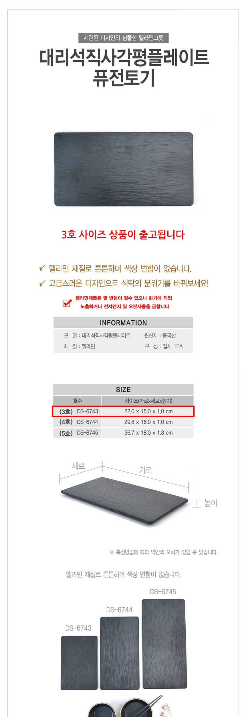 멜라민 퓨전토기 대리석무늬 직사각접시 평접시 3호 이미지/