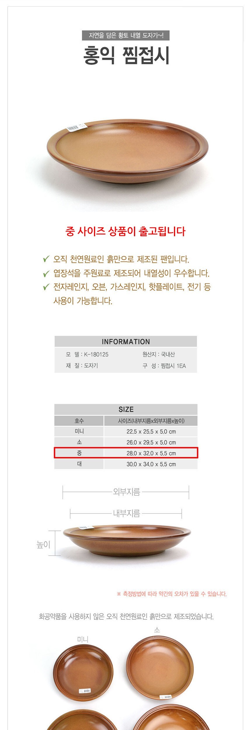 홍익 다용도 내열도자기 찜접시 중형 32cm