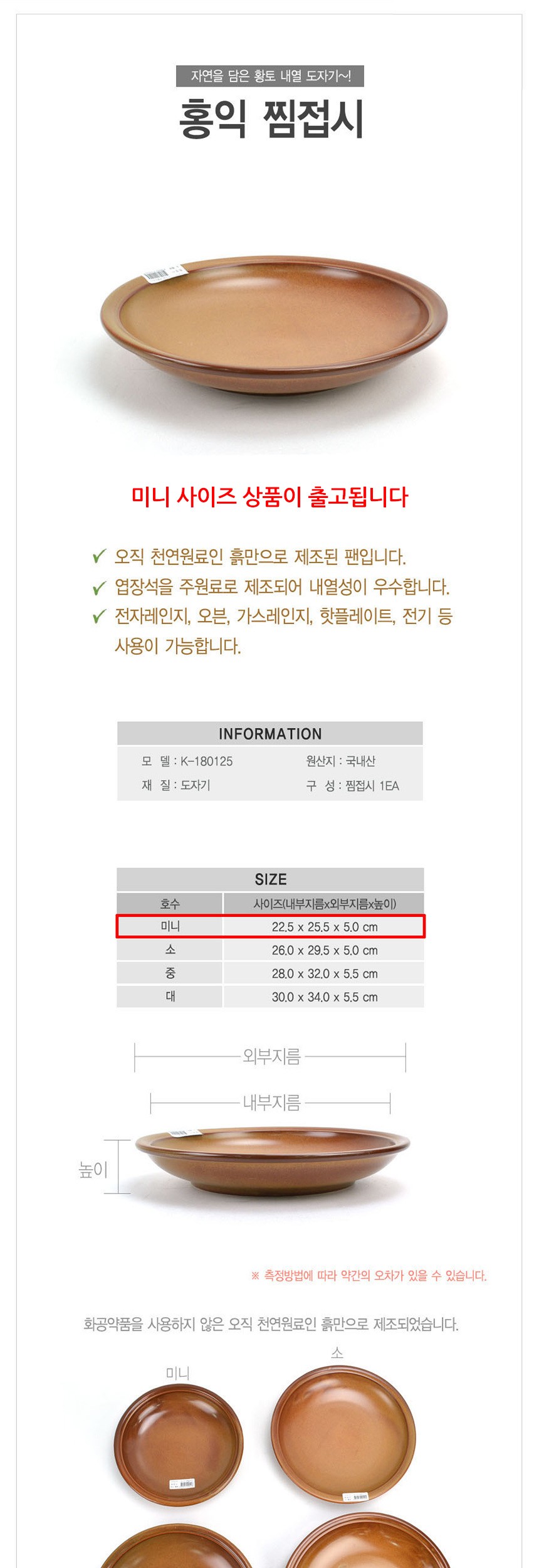 홍익 다용도 내열도자기 찜접시 미니 25cm 이미지/